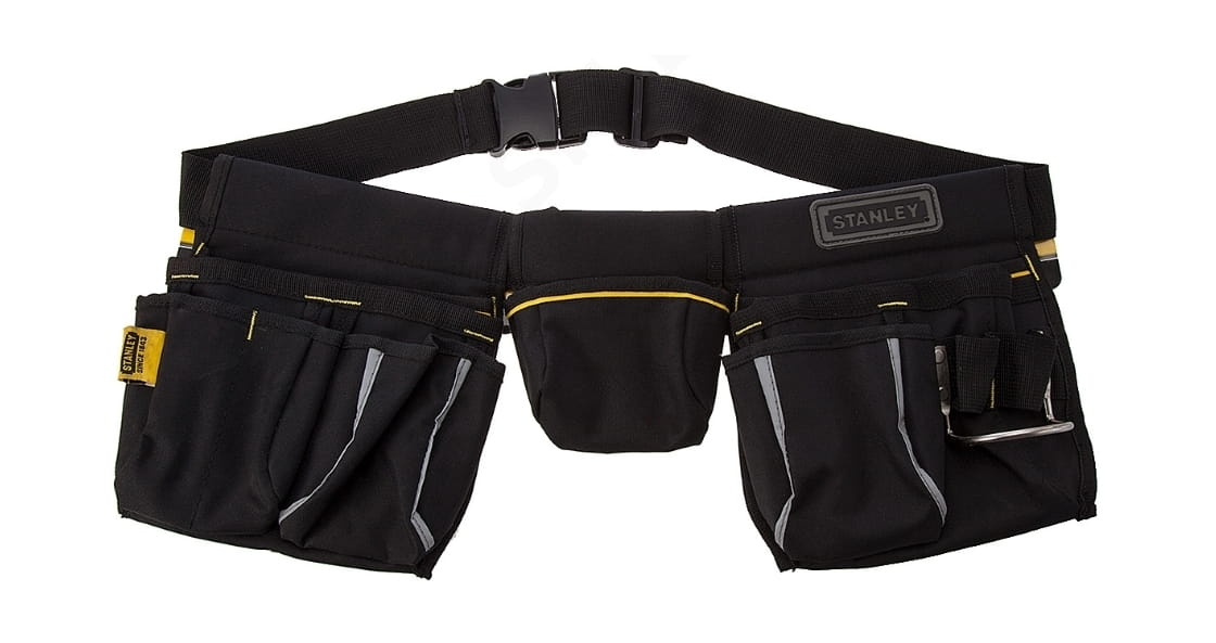 Pas monterski z dziesięcioma kieszeniami na narzędzia: dwie duże, dwie średnie oraz sześć małych. Po środku pasa znajduje się uchwyt na miarkę. Konstrukcja pasa wzmocniona nitami.